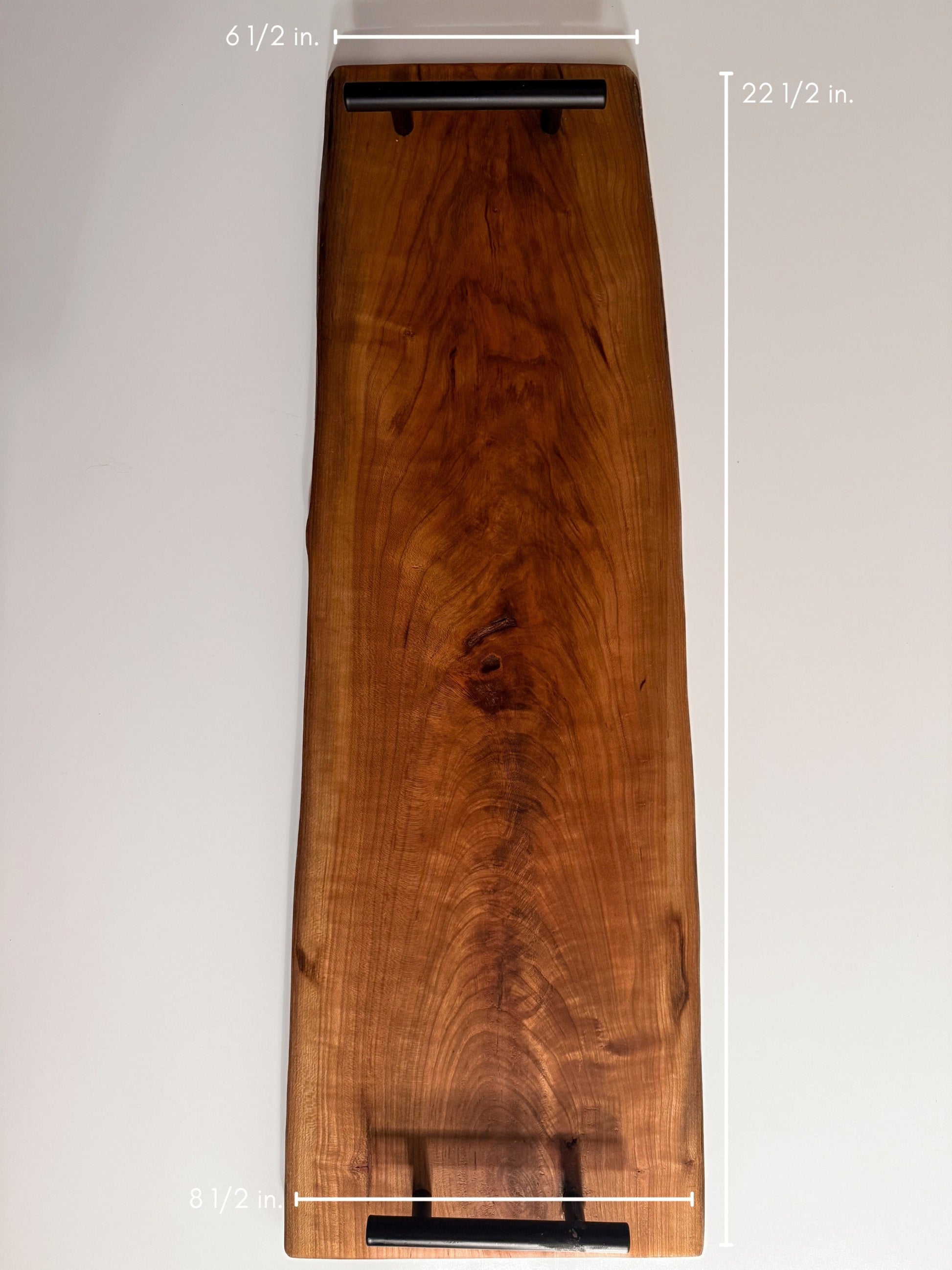 Crafted from solid cherry wood, a fine hardwood known for its smooth grain and warm, natural tone. Cherry starts lighter and gradually deepens over time and through use, developing a richer tone which makes each tray feel more personal with use. Finished with a food-safe oil to protect the wood and highlight its natural character.